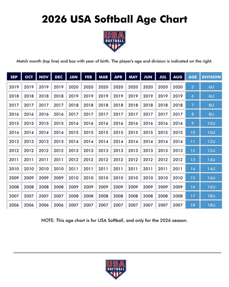 Here's a helpful chart to determine your softball age and what level you should be playing for the 2026 season.