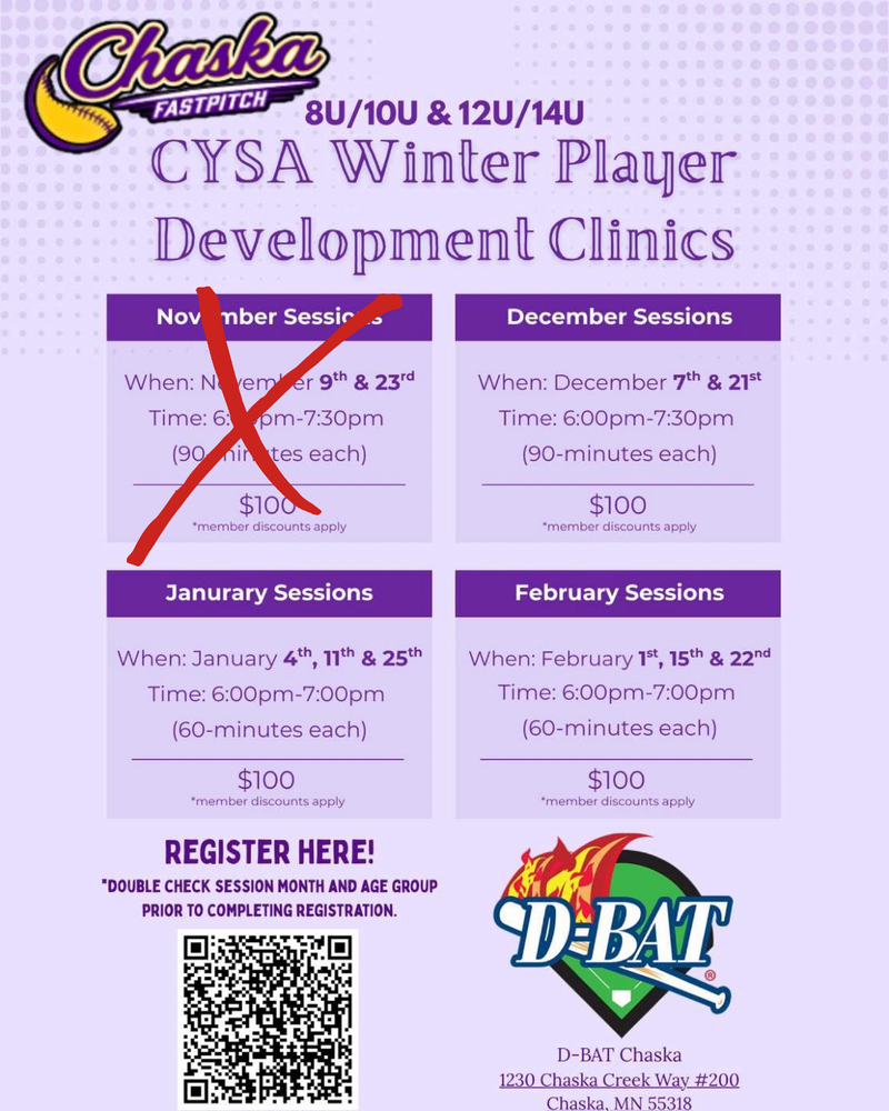 We are excited to share that this winter season, we have partnered with DBAT to offer development clinics for our players from November through February. These sessions are a great opportunity for players to continue developing their skills in the off-season.